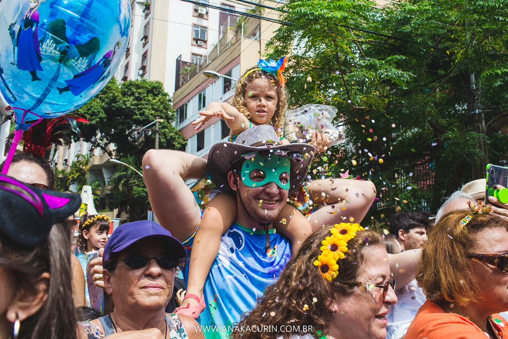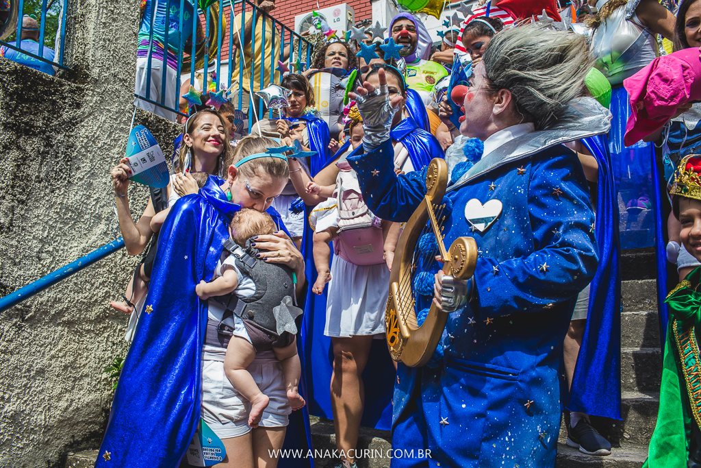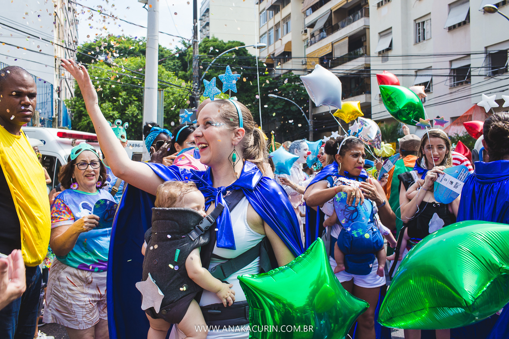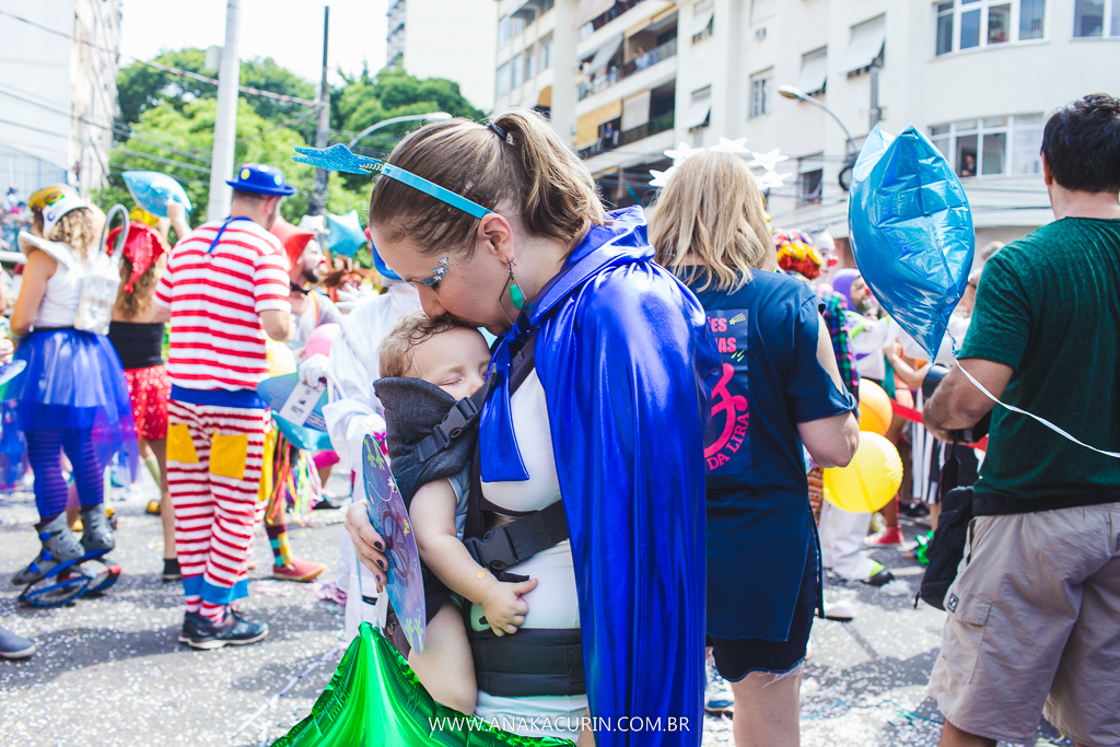 Mariana escolheu o bloco Gigantes da Lira para fazermos suas fotos, numa ala todinha de mães e bebês abrindo esse que sempre acho o bloco mais lindo e colorido do RJ. Um dia quente de carnaval, muita expectativa já na concentração. E quando a abertura do bloco desceu as escadas em direção à rua, os primeiros toques dos tambores arrepiou todo mundo doa pés à cabeça. Senti nos beijinhos demorados que a Mariana deu na cabecinha do Henrique, que ela era toda emoção naquele momento. Acho até que cheguei a ver olhinhos marejados. Fiquei imaginando que devia ser algo muito forte pra ela poder compartilhar aquele momento com seu pequeno. E pra mim, foi como ver o bloco pela primeira vez novamente, tamanha foi a emoção de estar ali tão perto, dentro, perte daquilo tudo. Papai Renato e a irmã Isabel seguiram de pertinho, se divertindo junto e seguindo a gente do lado de fora do cordão. Que dia!