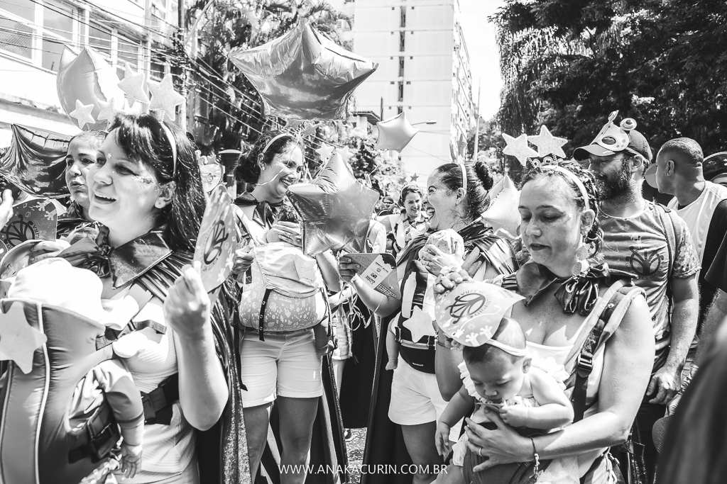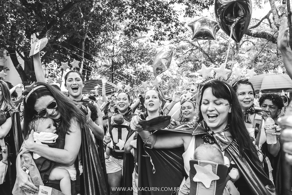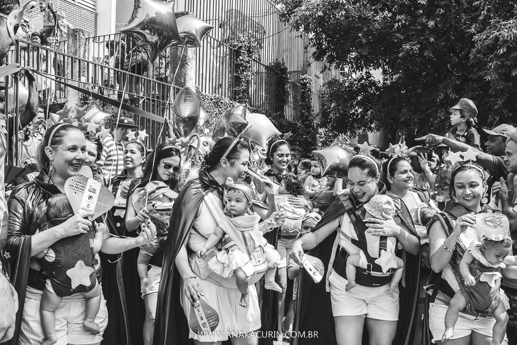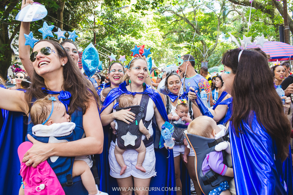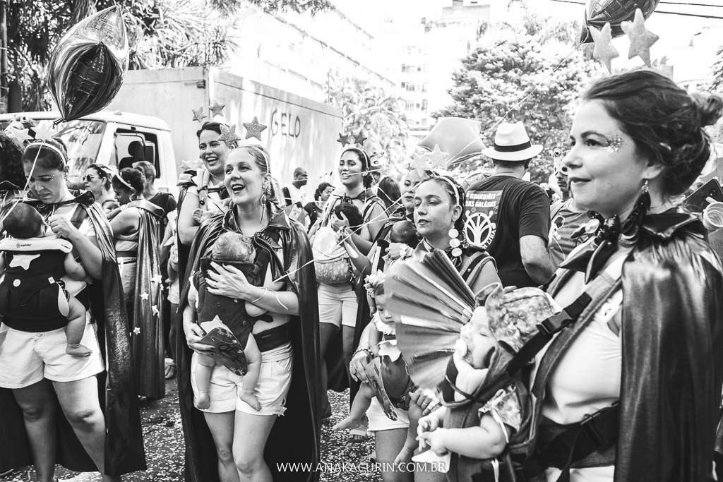 Mariana escolheu o bloco Gigantes da Lira para fazermos suas fotos, numa ala todinha de mães e bebês abrindo esse que sempre acho o bloco mais lindo e colorido do RJ. Um dia quente de carnaval, muita expectativa já na concentração. E quando a abertura do bloco desceu as escadas em direção à rua, os primeiros toques dos tambores arrepiou todo mundo doa pés à cabeça. Senti nos beijinhos demorados que a Mariana deu na cabecinha do Henrique, que ela era toda emoção naquele momento. Acho até que cheguei a ver olhinhos marejados. Fiquei imaginando que devia ser algo muito forte pra ela poder compartilhar aquele momento com seu pequeno. E pra mim, foi como ver o bloco pela primeira vez novamente, tamanha foi a emoção de estar ali tão perto, dentro, perte daquilo tudo. Papai Renato e a irmã Isabel seguiram de pertinho, se divertindo junto e seguindo a gente do lado de fora do cordão. Que dia!